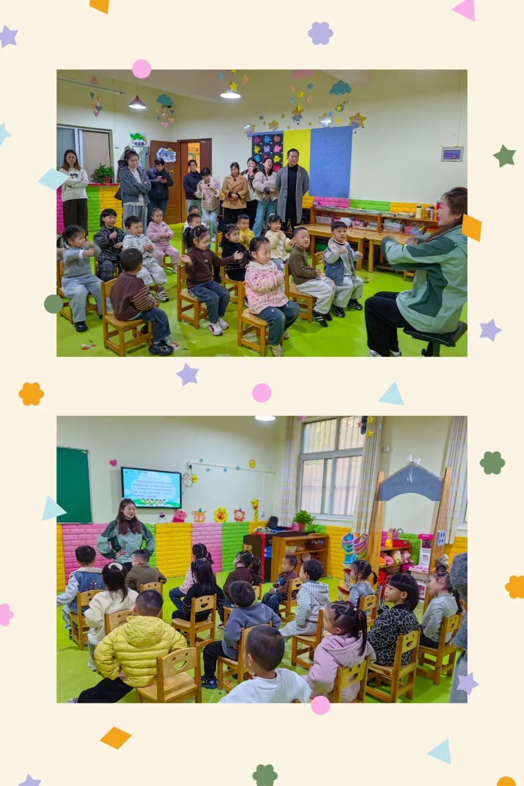 一陣陣歡聲笑語過后,家長會正式開始了。各班教師通過圖文并茂的方式,帶著大家回顧了開學以來的班級情況,以及孩子們的點滴成長。家長們耐心傾聽,對孩子們在園生活和學習有了更深入的了解。